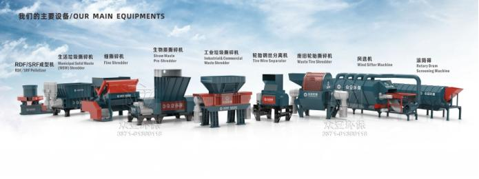 30多種單機設(shè)備:雙軸剪切式破碎機、單軸撕碎機、液壓剪切破、液壓粗破碎機、四軸剪切式破碎機、移動式固廢破碎站、廢舊輪胎鋼絲分離機、輪胎造粒機、輪胎磨粉機、風(fēng)選機、蝶形篩、滾筒篩等