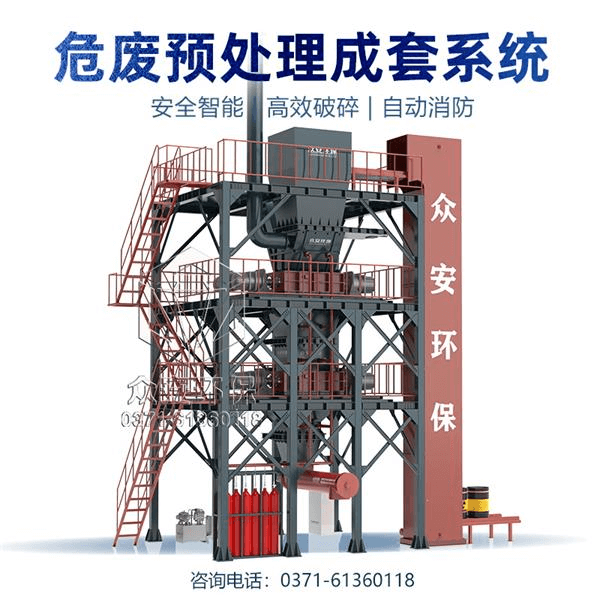 預(yù)處理作為水泥窯協(xié)同處置的關(guān)鍵性處理環(huán)節(jié),它的設(shè)備及工藝的選擇尤其重要,為了更好地的配合市場的需求,鄭州眾安環(huán)保針對危廢物料的特點,發(fā)揮自身技術(shù)優(yōu)勢,自主創(chuàng)新研發(fā)的一站式的危廢預(yù)處理設(shè)備-危廢破碎樓。該系統(tǒng)不僅能夠為目標(biāo)客戶提供專業(yè)的智能破碎設(shè)備,更是融合了消防系統(tǒng),以實現(xiàn)破碎過程的安全防控,確保破碎線順暢運(yùn)行。